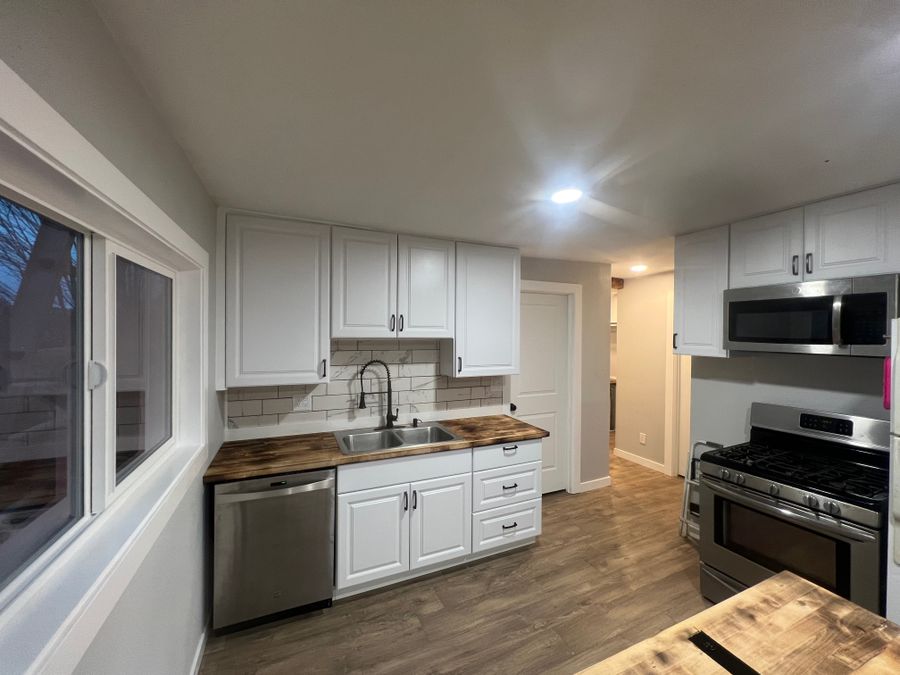 Newly remodeled upstairs unit with luxury vinyl and tile floors. New kitchen, bath and laundry room. Master bedroom has a walk-in closet with some adjustable shelves. Unit has a front and back deck with access to the large back yard and concrete patio. The Unit has air conditioning and heating, tankless hot water, and its own washer and dryer. The renter is responsible for all of their utility's. The rental unit is located in the middle of the beautiful small town of Orting.